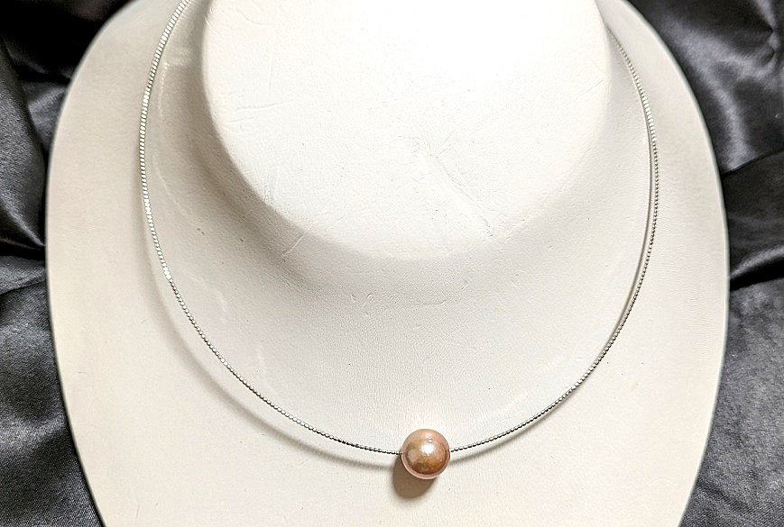 - 特売 照り巻きは最高 稀少な天然色パープルカラー大珠パールスルーネックレス10.5㍉前後