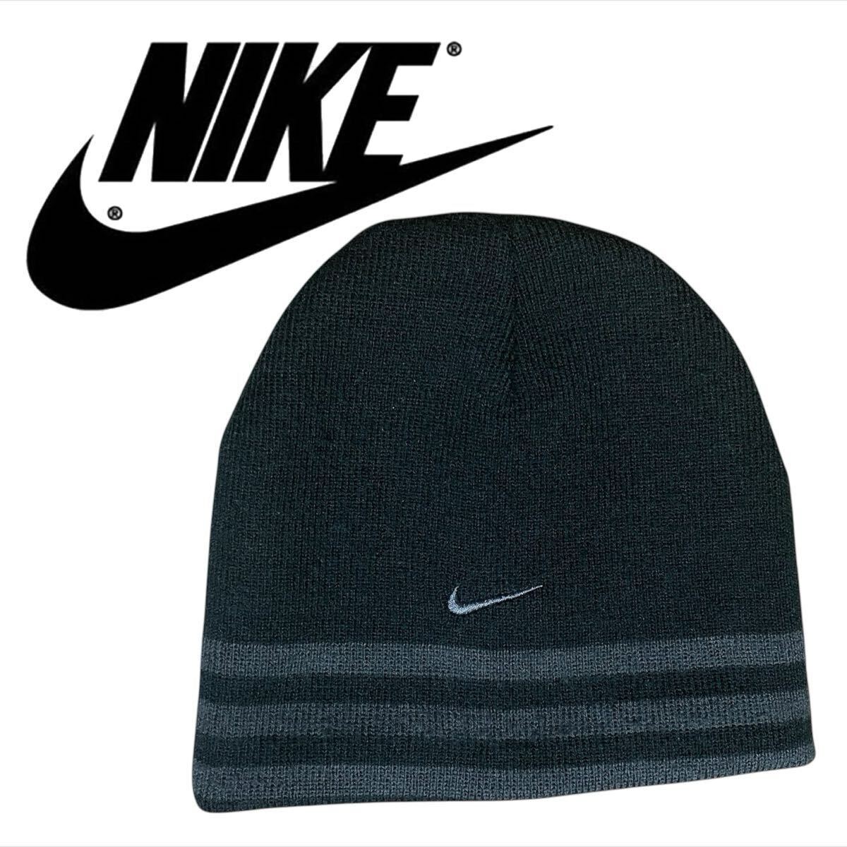 - NIKE ナイキ ニット帽 ビーニー リバーシブル 90s 00s 黒 ブラック × ダークグレー 灰色 すウォッシュ ライン 服飾小物 中古【5071】K