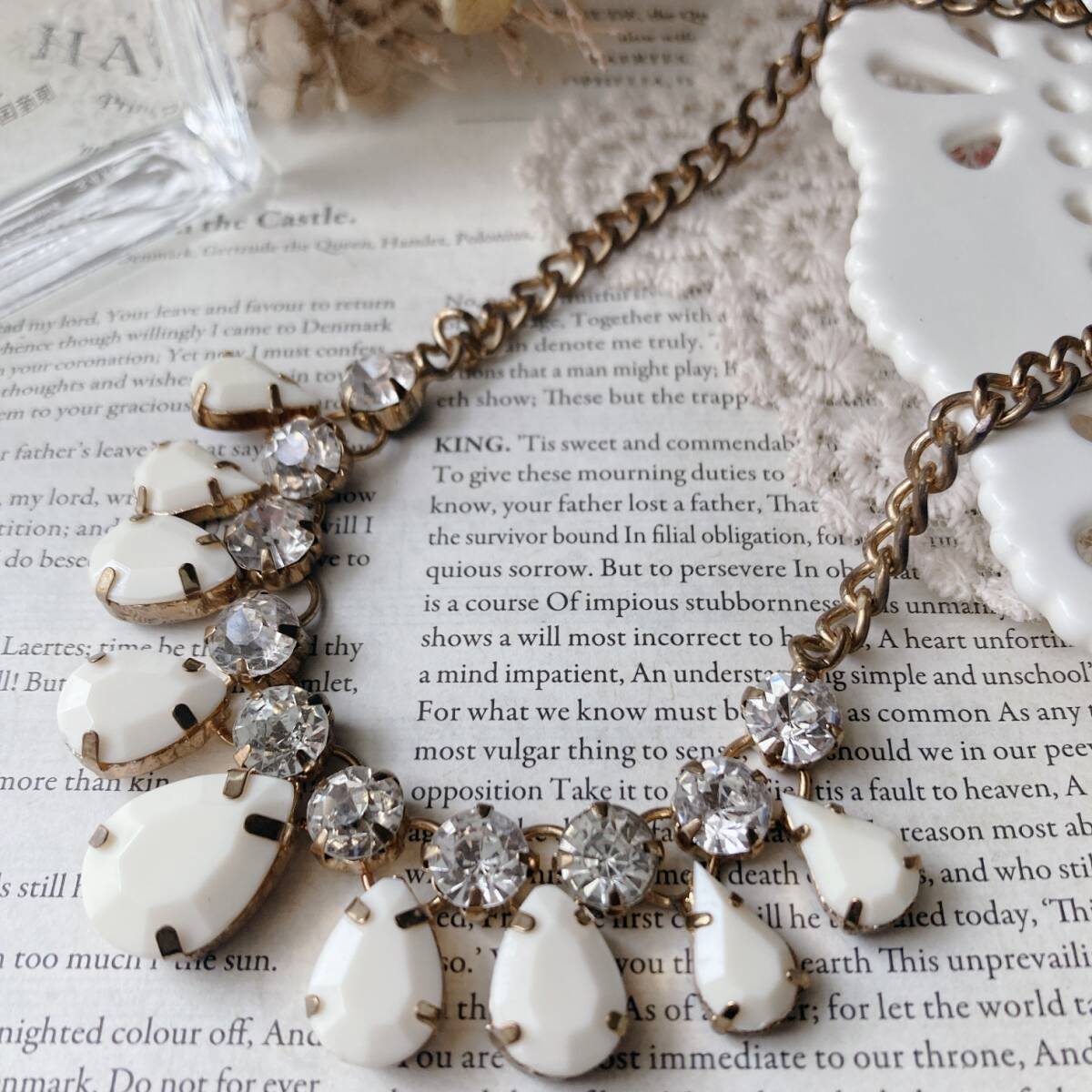 > ヴィンテージネックレス ホワイト ビジュー ゴールドチェーン ショート☆vintage jewelry accessoriesR0441