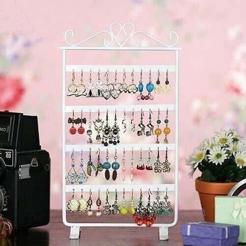 - ゴシック ハート ピアス スタンド 展示 12穴×4段 収納 (白)