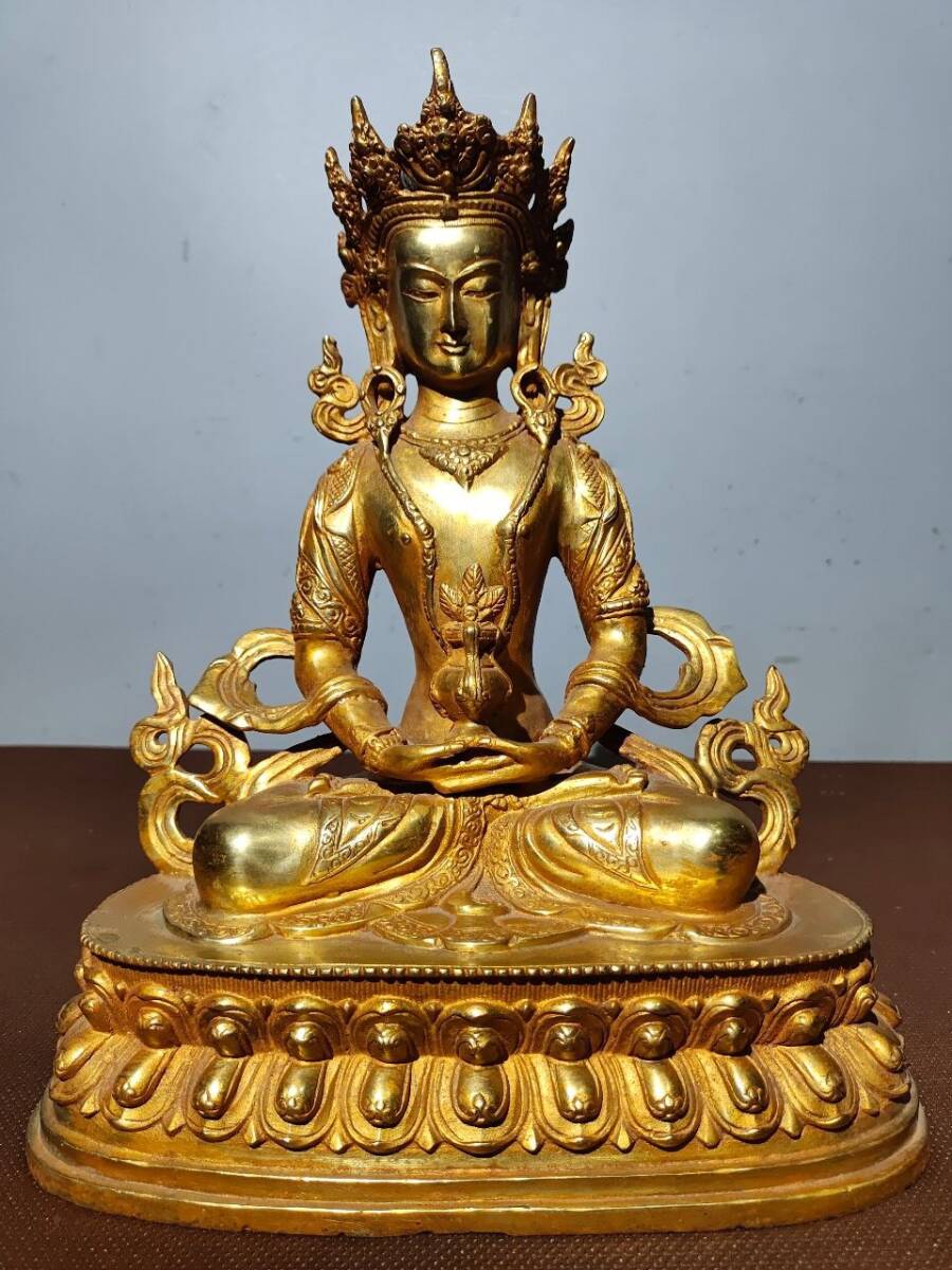 - ▽鴻▽ 銅製 塗金 無量寿仏 仏教古美術 供養品 古賞物 中国古玩 中国古美術