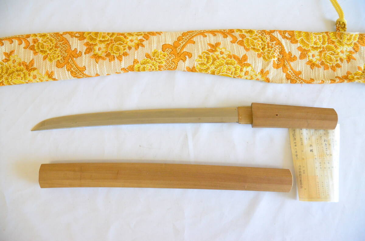 日本刀 脇差 わきざし 真剣 無銘 白鞘 刃渡り36.3cm 全長45cm 骨董 古美術