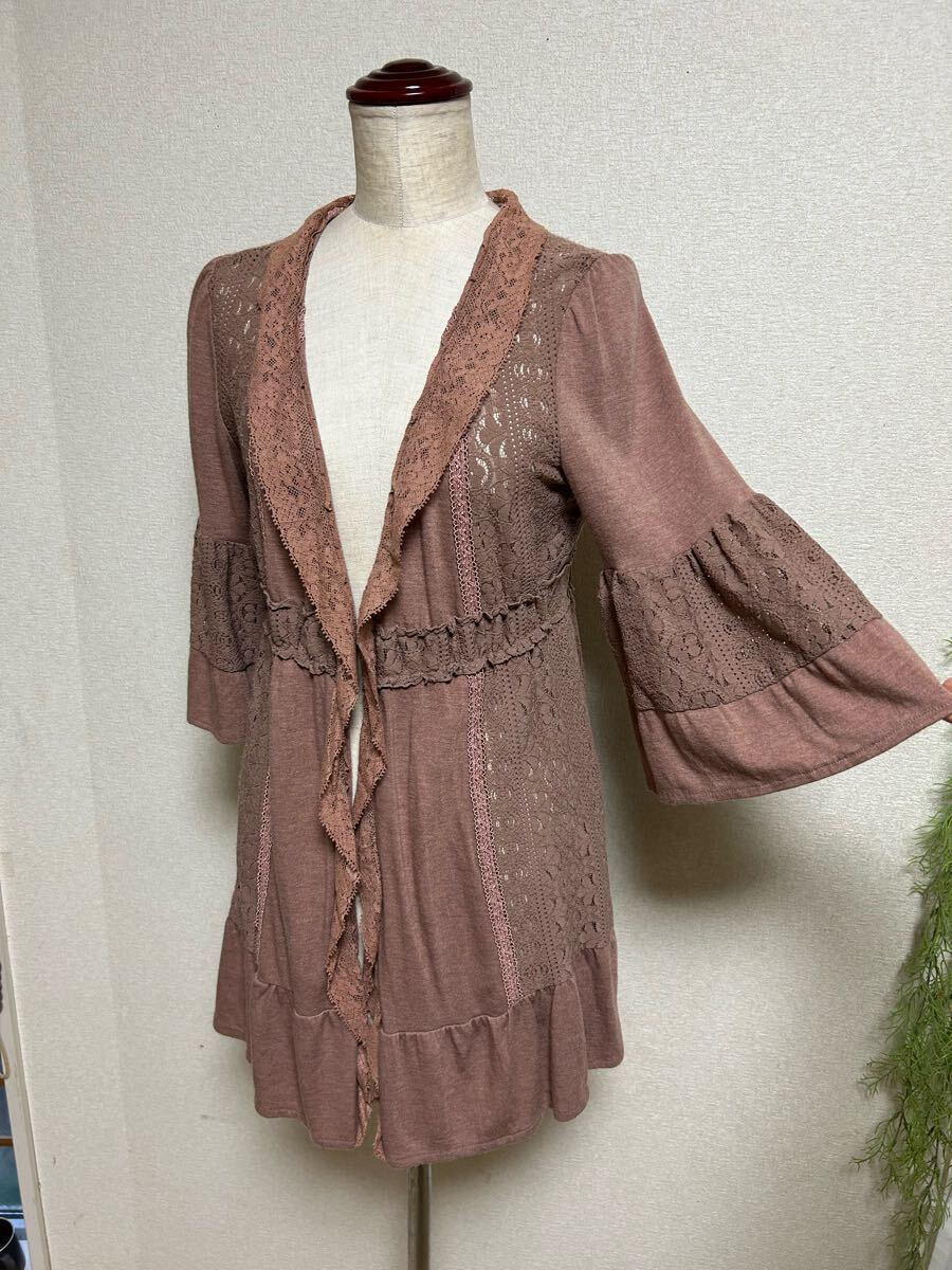 - 【 axes femme ★アクシーズファム】羽織・レース仕様・カットソー素材・7袖丈程度・Mサイズ