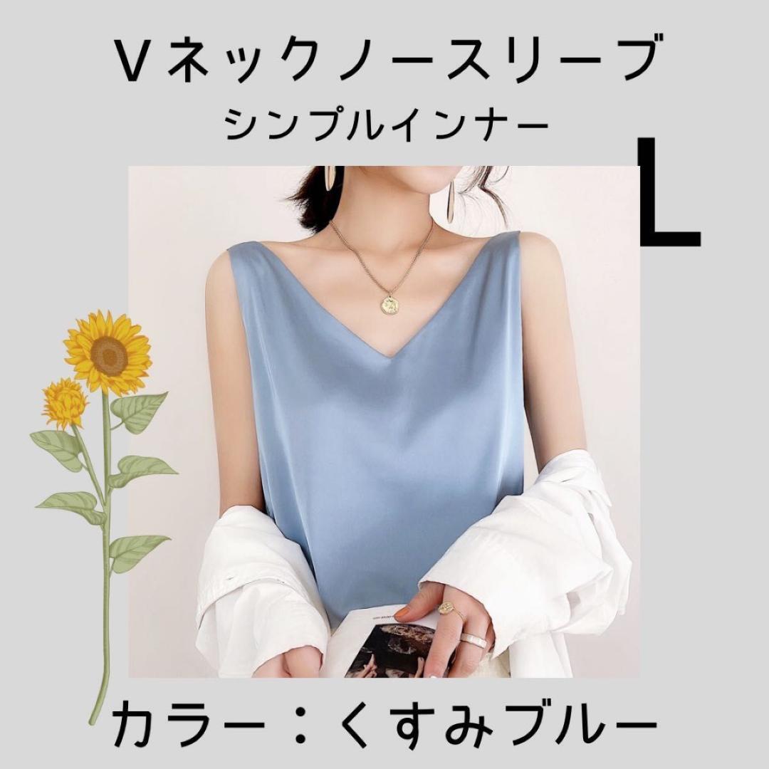 - 【L】Vネック ノースリーブ くすみブルー キャミソール シンプル トップス