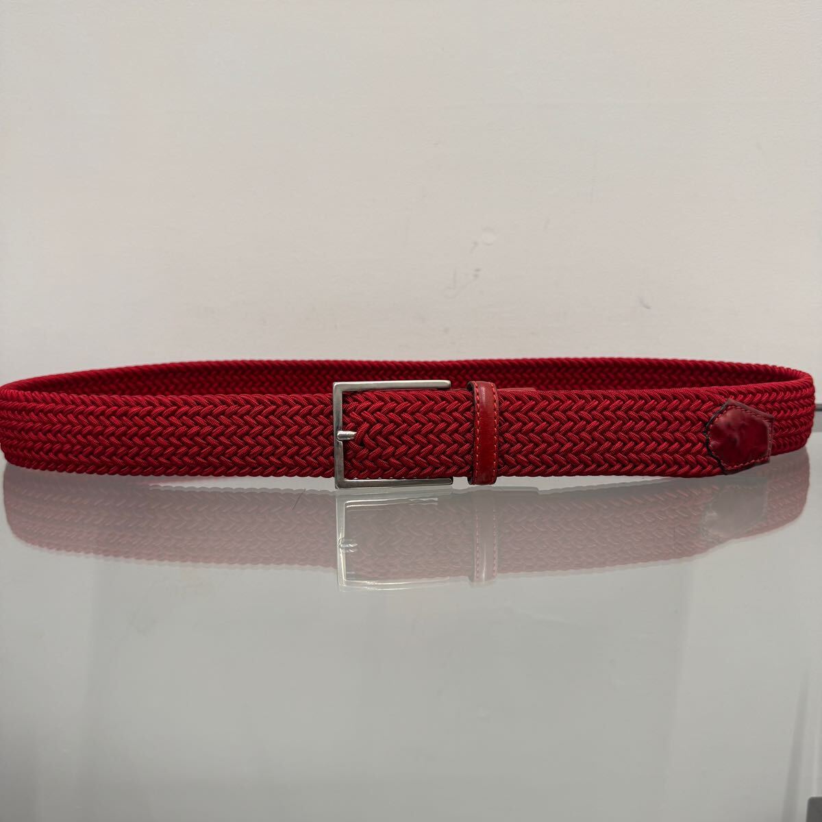 - 【美品】 ノーブランド◆ベルト◆レッド◆95 メッシュ コットン メンズ 紳士 ビジネス