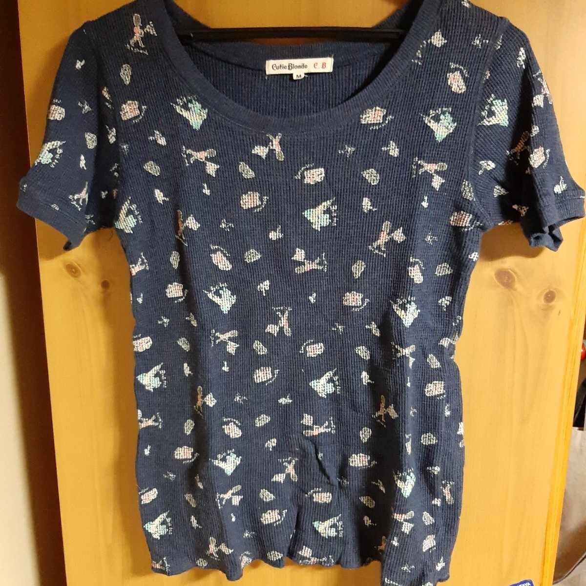 - ★最終処分特価★*CUTIE BLONDE*ネイビーのワッフル素材にメルヘン柄プリントのカットソー*
