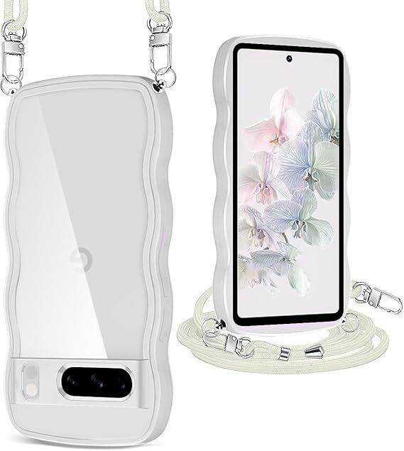 - Pixel 8 Pro ケース クリア ショルダー ストラップ付き ピクセル 8 Pro カバー 透明 スマホケース ワイヤレス充電対応(ホワイト)