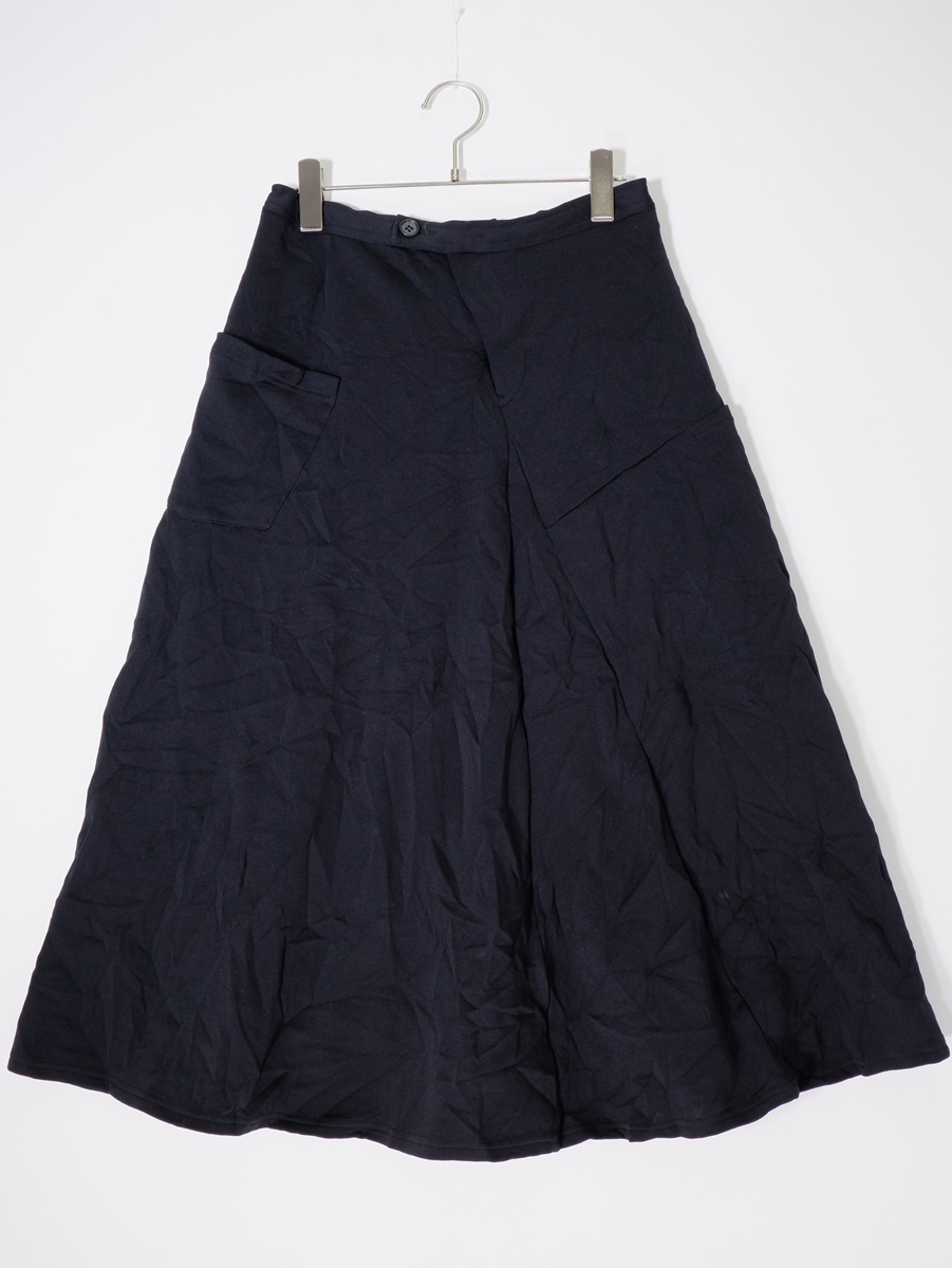 - Y's/ワイズ(ヨウジヤマモト) ワッシャーシワ加工ポリ サイドポケット切替デザインフレアスカート [LSKA78002]