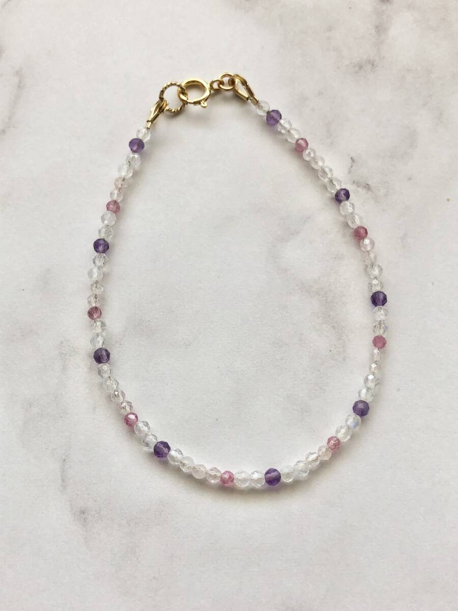 - [売り尽くし500円〜]ムーンストーン&トルマリン&アメジストのブレスレット