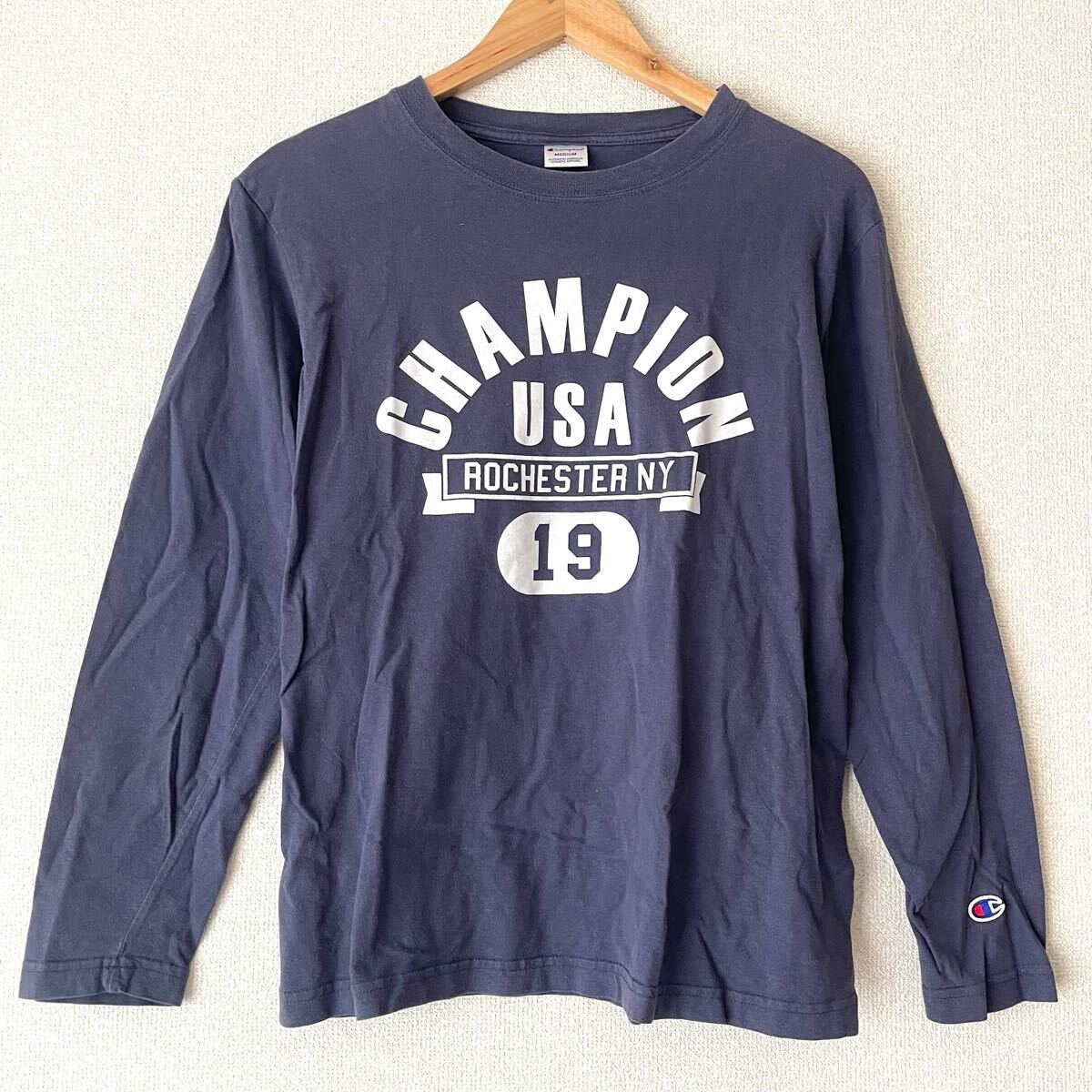 - Champion チャンピオン ロンT 長袖 Tシャツ アメカジ ROCHESTER ロチェスター USA 1919 ネイビー カットソー M 古着 90s 00s カレッジ ロゴ