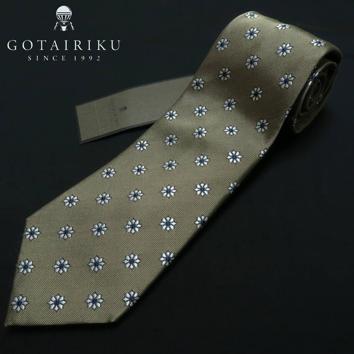 - W165■オンワード樫山 五大陸 ゴタイリク 未使用品 ハンドメイド 日本製 ベージュ色系 小紋柄 絹100% 上質 高級ネクタイ 14300円