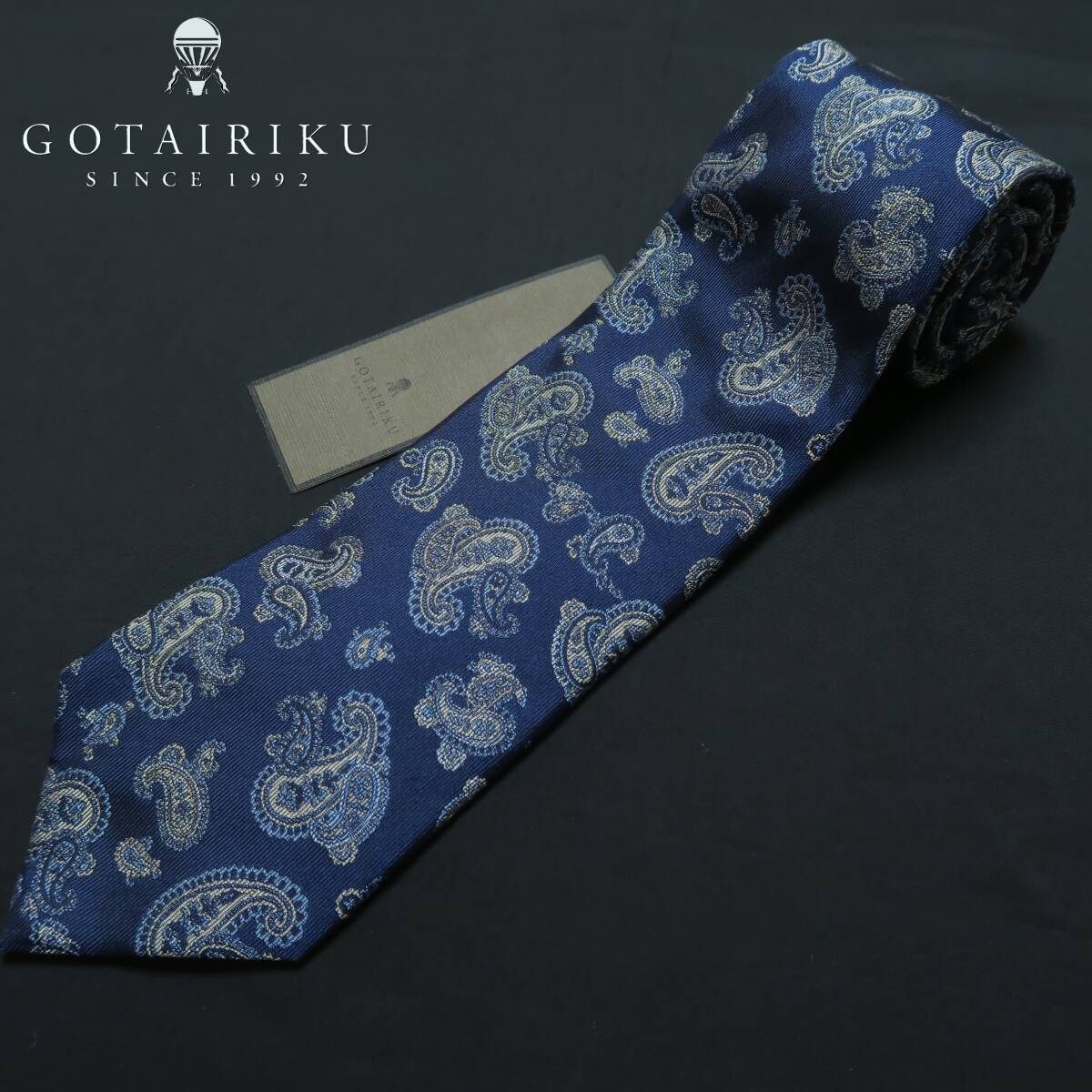 > W161■オンワード樫山 五大陸 ゴタイリク 未使用品 イタリア生地 日本製 紺色系 ペイズリー柄 絹100% 上質 高級ネクタイ 定価16500円
