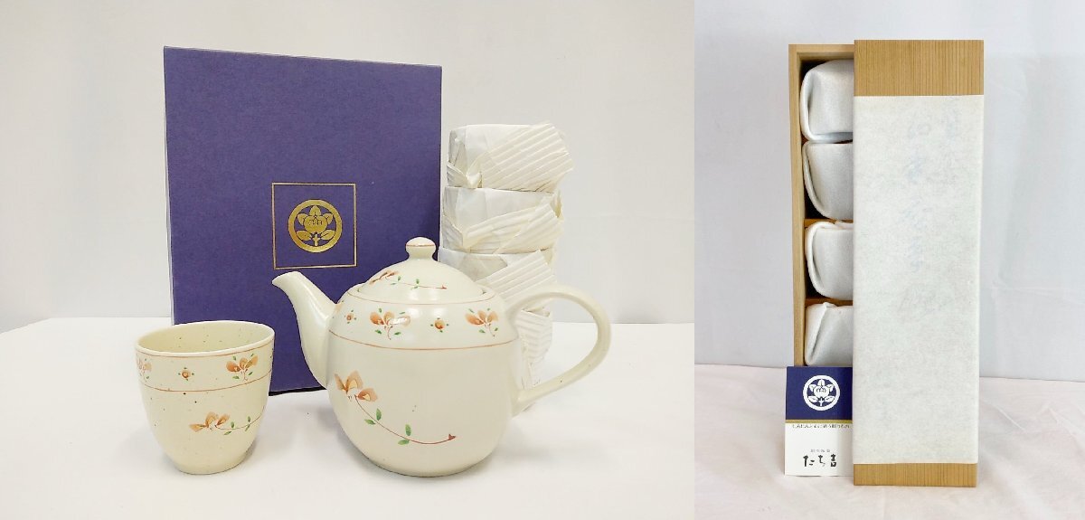 - 未使用品 たち吉 お茶呑茶碗 花化粧 茶器揃 萌葱金彩 まとめ売り セット 美濃焼 茶器 ティーポット 急須 / 名古屋発5-27