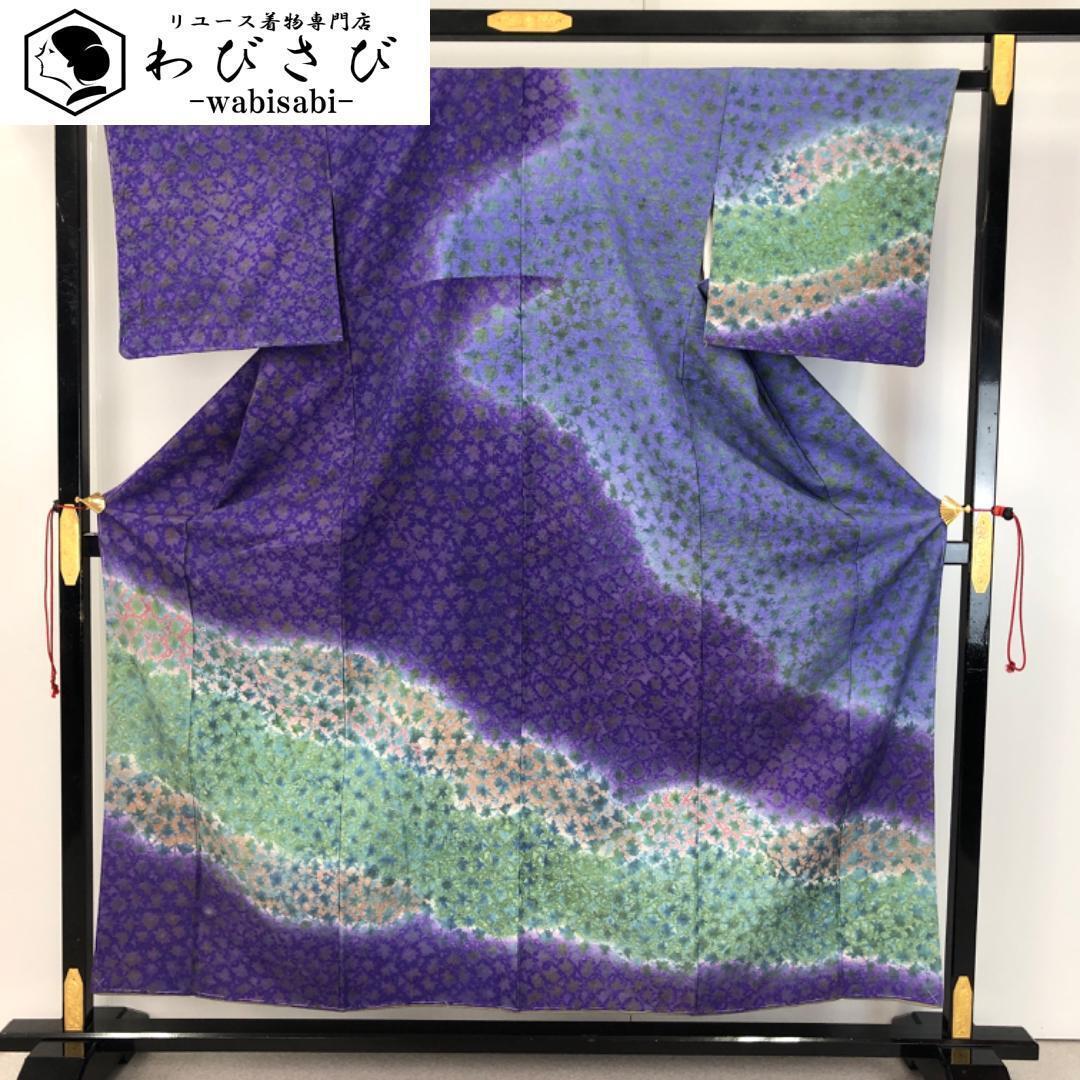 > 紬着物 独創的な色彩 印象的な染柄 しつけ糸 K-4690 着物 きもの kimono 和服 和装 中古 リサイクル着物 【送料無料】