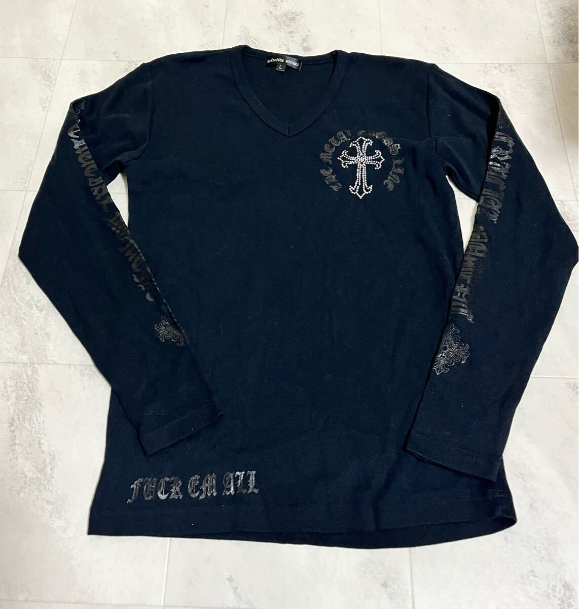 > DEFECTIBE STRURT 長袖Tシャツ Lサイズ ストーンクロス Vネック スカル ドクロ 黒 ブラック ロンT