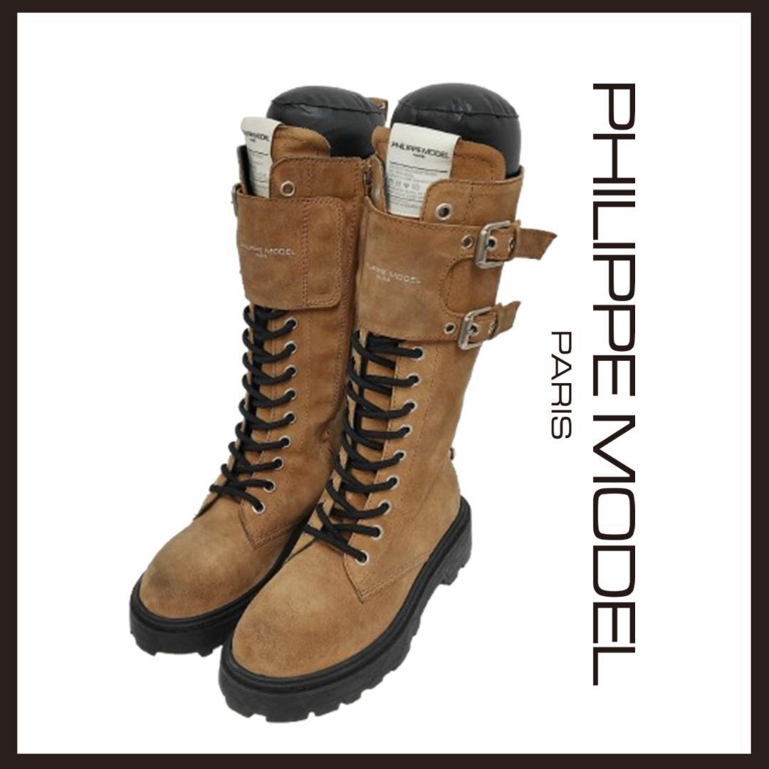 > ○★新品未使用 PHILIPPE MODEL レースアップレザーブーツ ベージュ 23.5cm相当(フィリップモデル)○●