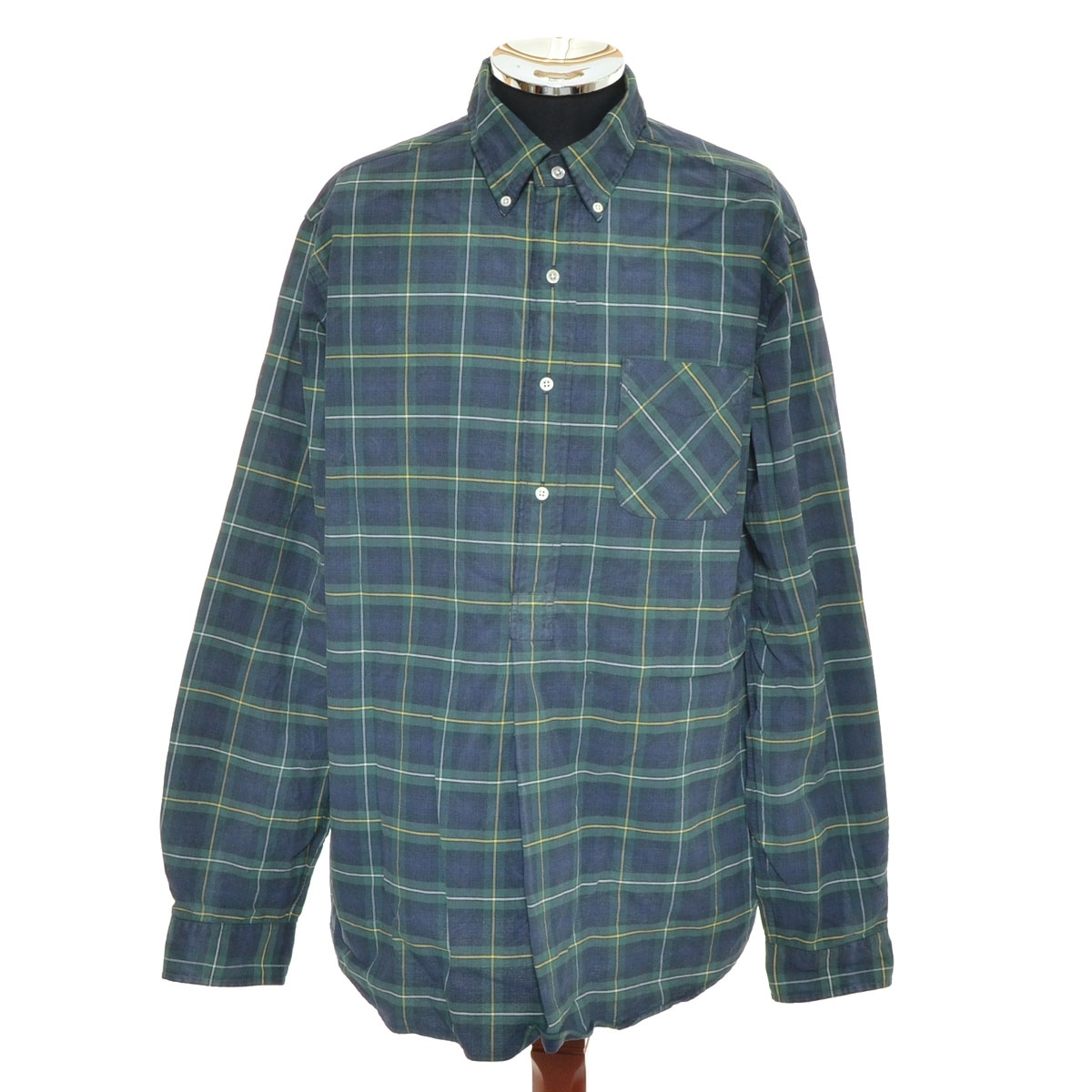 - ●547992 RRL RALPH LAUREN ラルフローレン ダブルアールエル ●プルオーバーシャツ 長袖 ボタンダウン サイズL メンズ グリーン チェック
