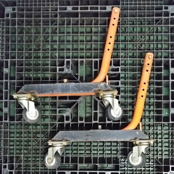 - 【富山】作業機用 スタンドキャスター 丸軸 軸径 約40㎜ スタンド 足 脚 トラクター トラクタ ハロー パーツ 部品 倉庫保管 北陸 中古