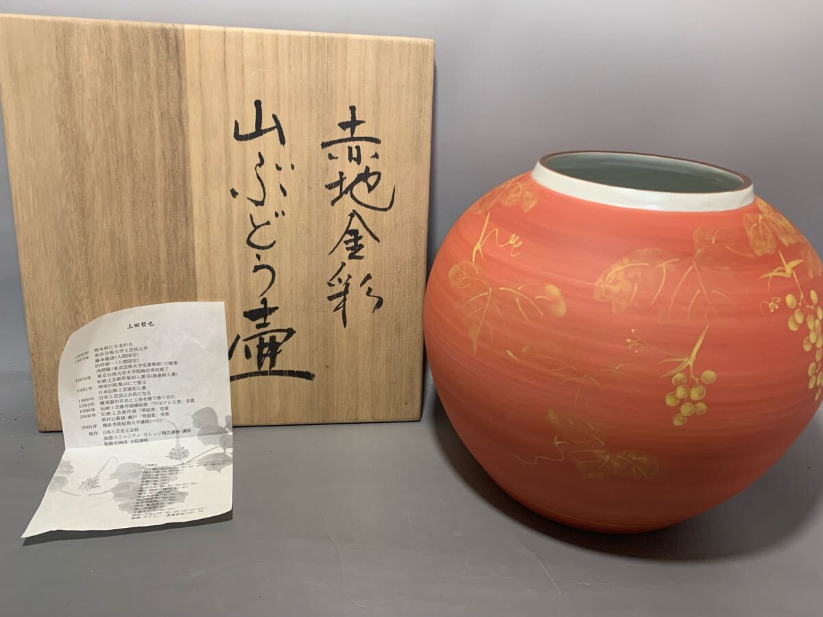 - 上田哲也 赤地金彩 山ぶどう壺 共箱