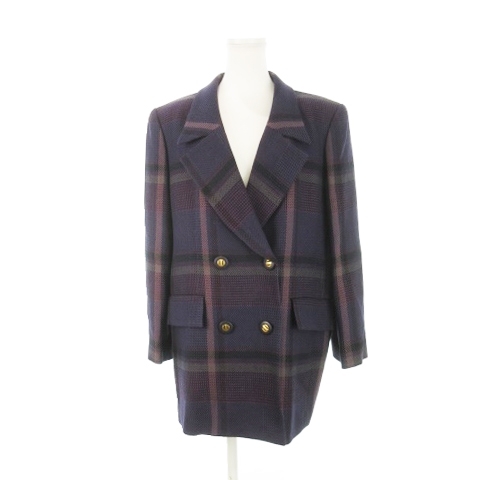 > レリアン Leilian テーラードジャケット ブレザー ダブル 総裏地 ウール チェック 大きいサイズ 13 紫 パープル /AH20 ■GY18