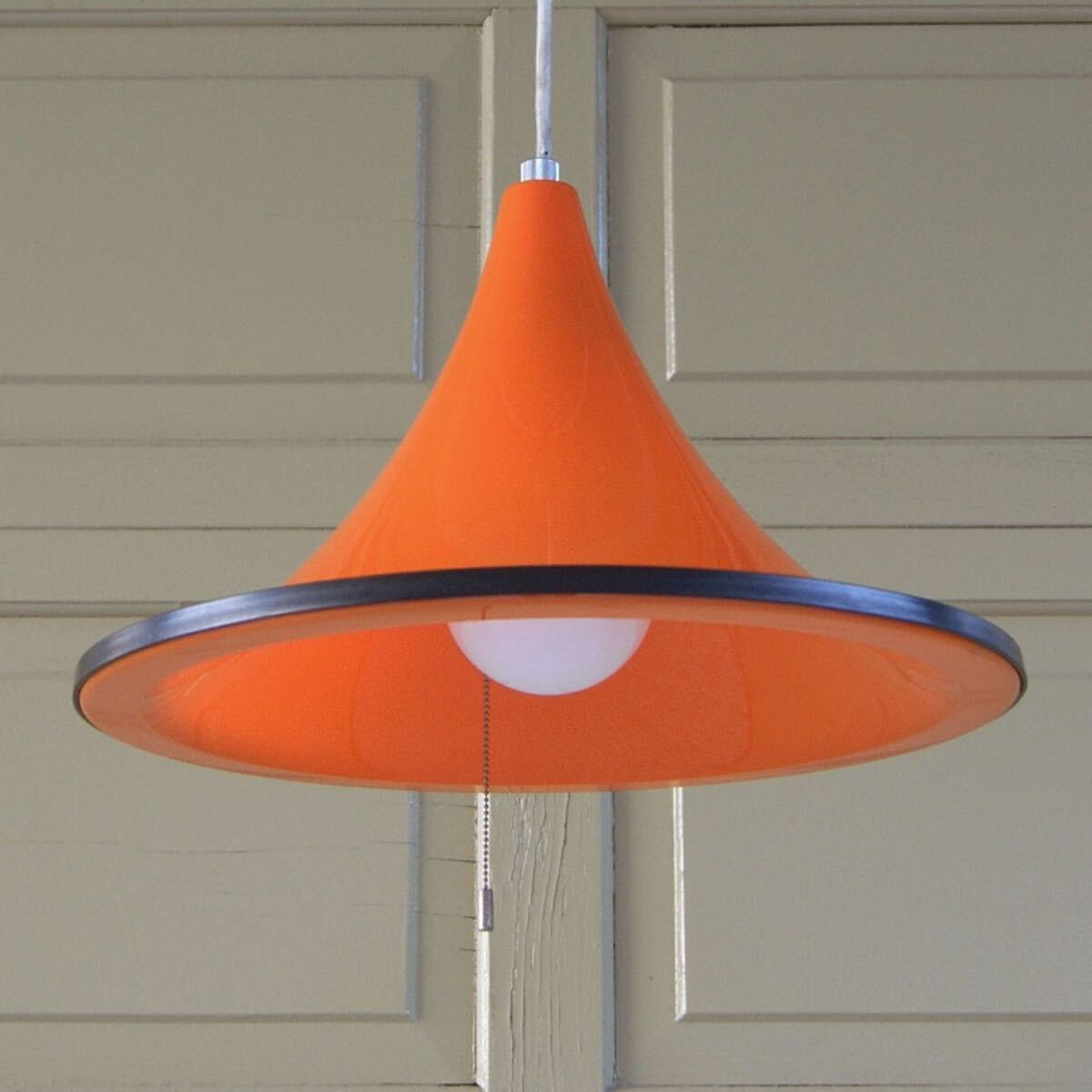 - m☆ペンダント天井ライト/1970年代/天井照明/ランプ/電化製品/オレンジ/インテリア/ディスプレイ/コレクション/昭和レトロ◎