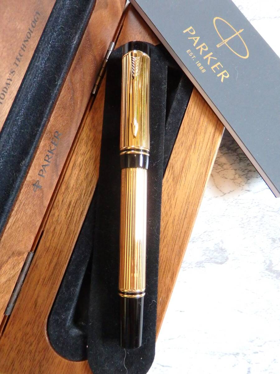 > ◆【きれいなお品】パーカー デュオフォールド ゴールドプレーテッド・インターナショナル万年筆 ペン先:18K750ソリッドゴールド B