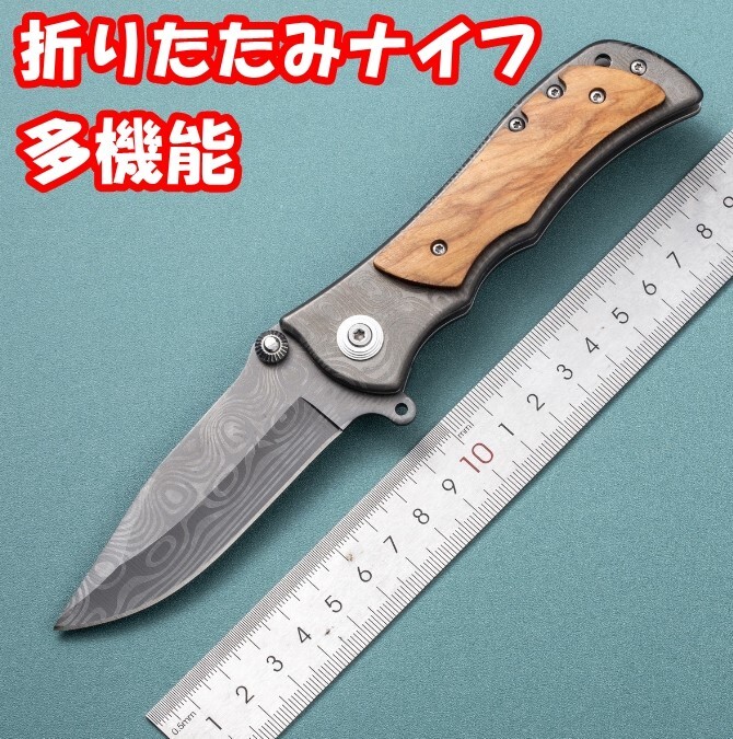 - アウトドアナイフ 折りたたみナイフ 多機能ナイフ フォールディングナイフ ステンレス製 風刃紋 M408