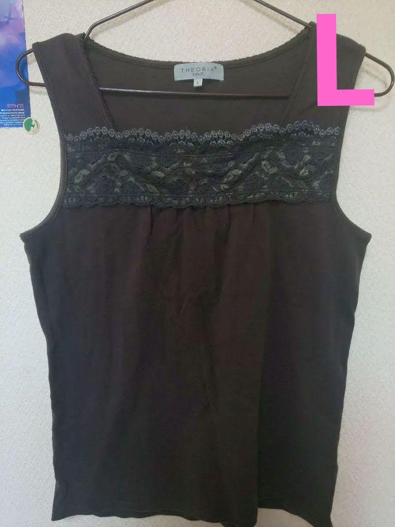- しまむら胸元レース使いタンクトップブラウンLセオリア