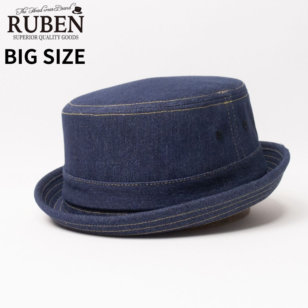 - 新品 RUBEN デニム ポークパイハット ネイビー BIG SIZE