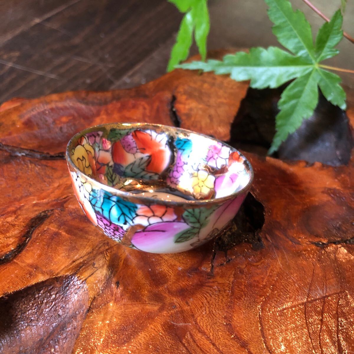 - 花尽くし 金彩 豚 猪口★盃 杯 桃 古民家 風雅 酒器 晩酌 ぐい呑 粋 膳 風流 風情 吉祥 縁起 傾奇者 侘び寂び ブタ 数奇 葡萄 柘榴 椿
