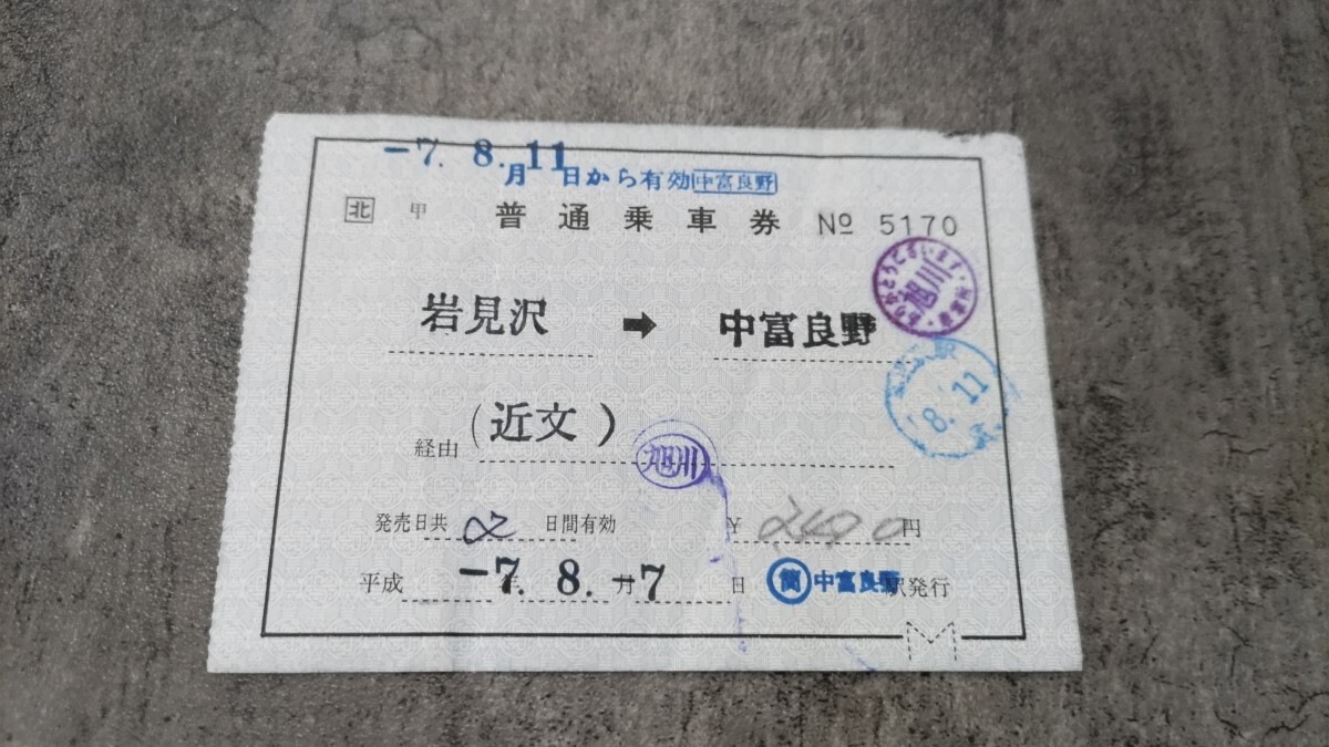 - 中富良野駅発行「岩見沢→中富良野」普通乗車券