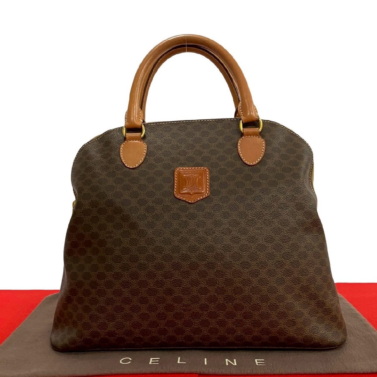- 極 美品 CELINE セリーヌ ヴィンテージ マカダム ブラゾン トリオンフ 柄 レザー ハンドバッグ ミニ トートバッグ ブラウン 43321