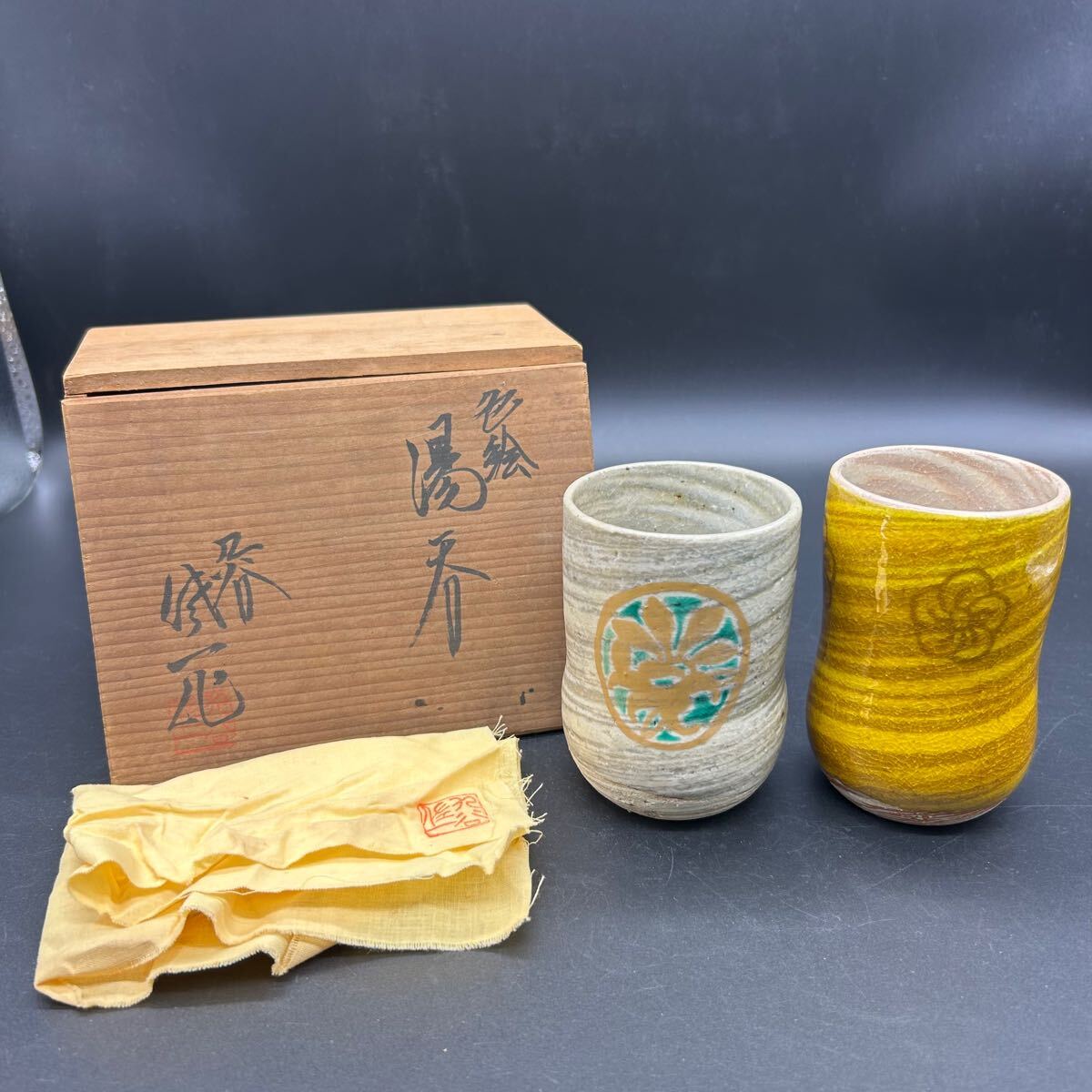 - 九谷焼 松本佐一 色絵 湯呑 湯呑み 佐一作 ネ6