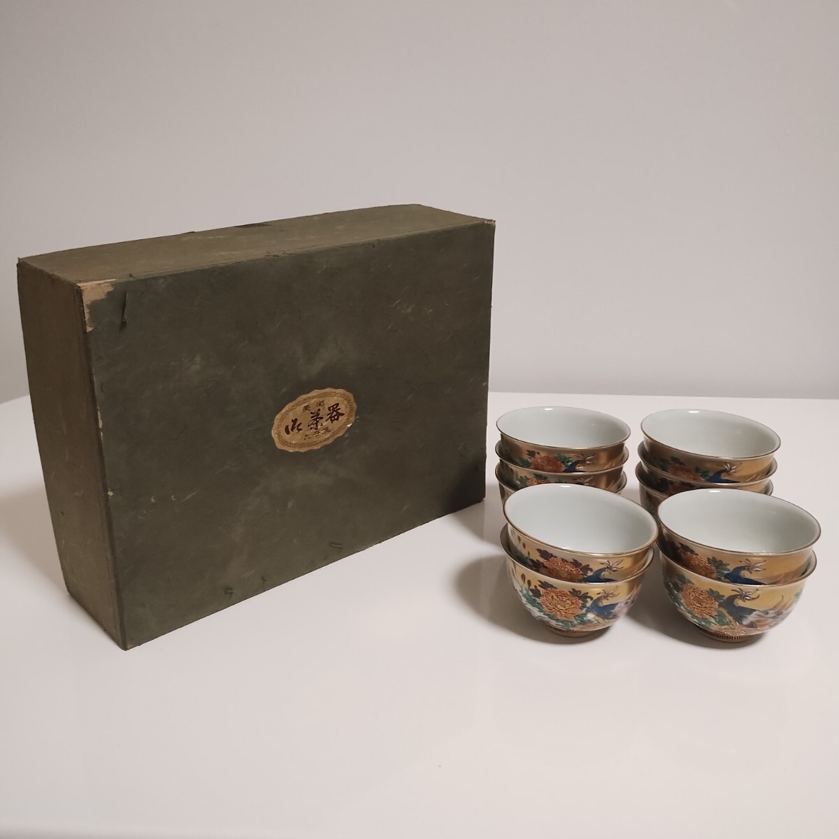 - 九谷焼 九谷綿山 金彩牡丹孔雀 湯呑み 10客