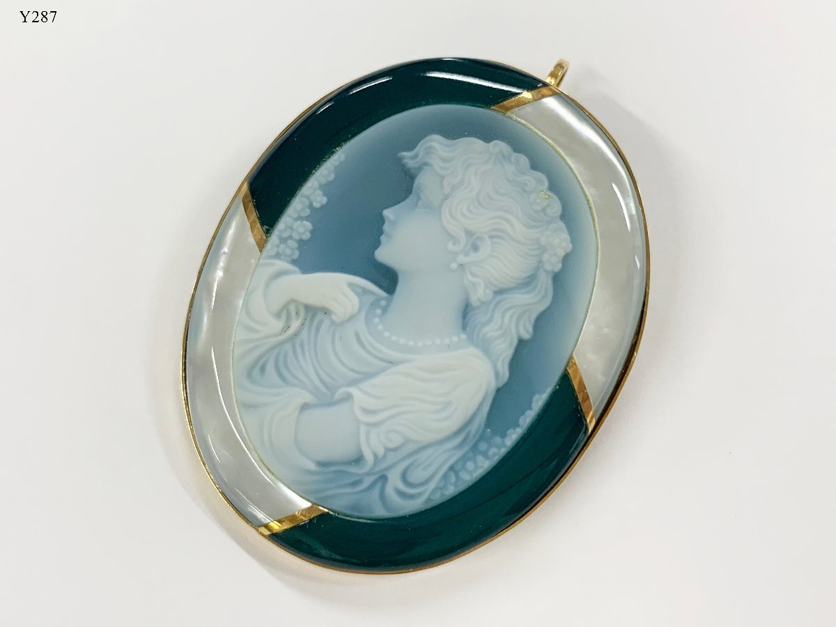 > カメオ ブローチ ペンダントトップ 2way 金具 K18刻印 約41mm×51mm 約20.6g 女性 横顔 シェル レディース アクセサリー Y287J