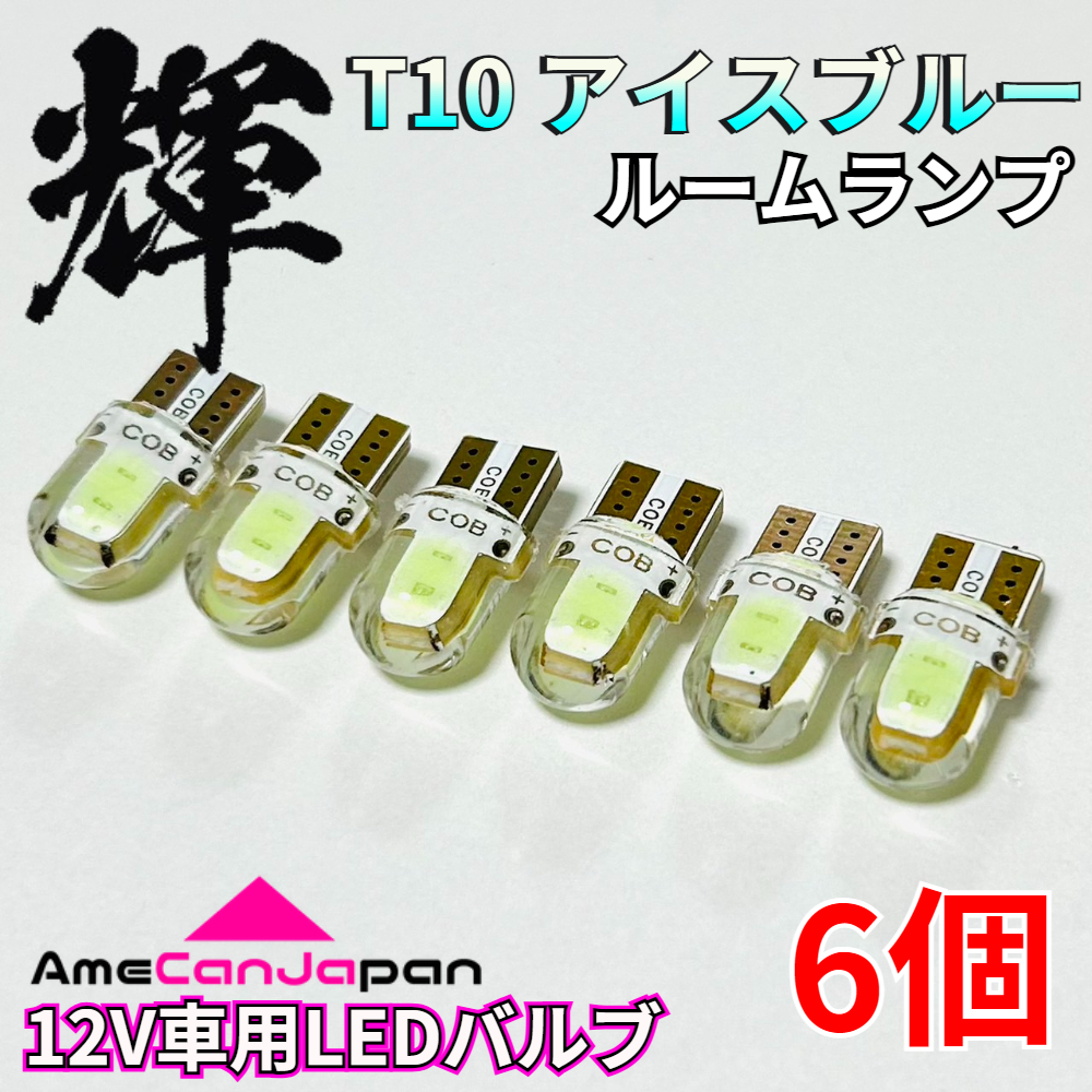 - AmeCanJapan 高輝度LED アイスブルー T10 ウェッジ COB ルームランプ ナンバー灯 ポジション球 バイク パーツ カスタム 車検対応 6個 輝