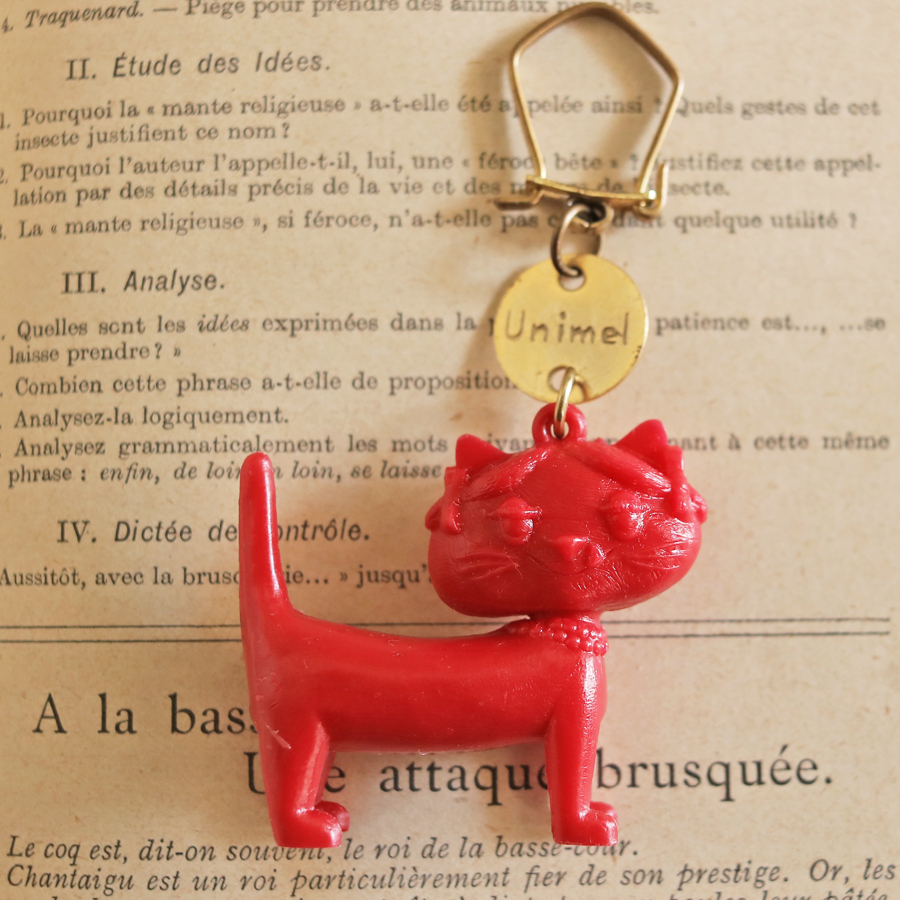 - フランス ビンテージ キーホルダー Unimel 猫 赤い猫 フランスアンティーク ブルボンキーホルダー 赤 レッド フレンチキーホルダー B*