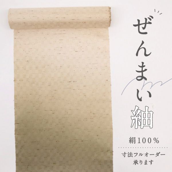 > 【反物】 ぜんまい紬 付下げ しっとりぼかし 格子の地紋 正絹着物 お仕立て可 反25-7