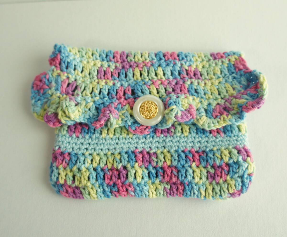 - ♪ ハンドメイド 小物入れ かぎ針編み 手編み コットン ボタン ボタンホール付き