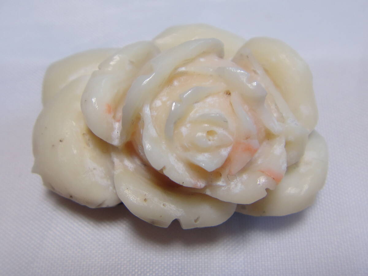 - 本珊瑚 サンゴ さんご コーラル 帯留め お花彫刻 繊細彫刻 レトロ ヴィンテージ アンティーク Y657
