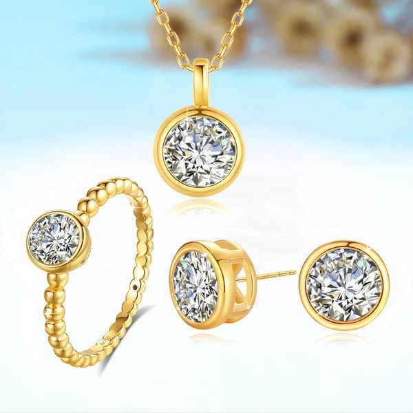 - 【価格の問合せのみで値下げ】女性のための18Kゴールドジュエリーセット、鑑別付き、終了4日までに最初に入札すると開始価格で購入可能_Sz