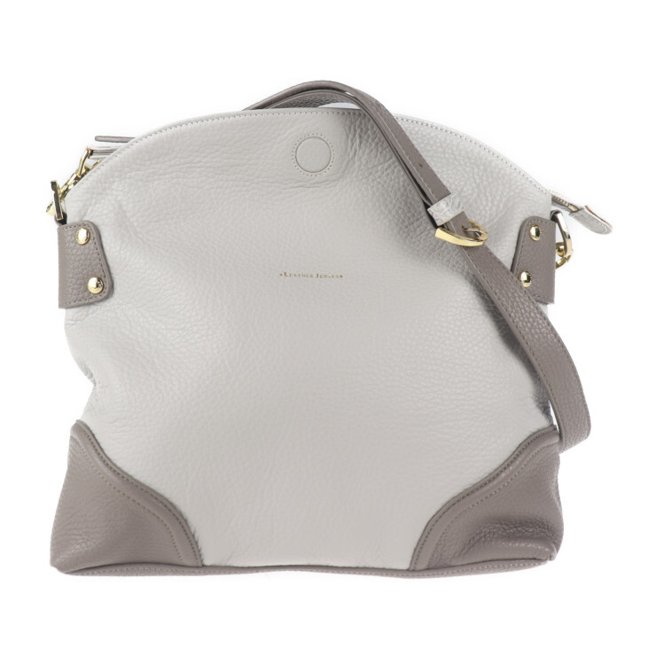- 超美品 LEATHER JEWELS レザージュエルズ バッグ - ショルダーバッグ レザー グレー系 ゴールド金具【本物保証】