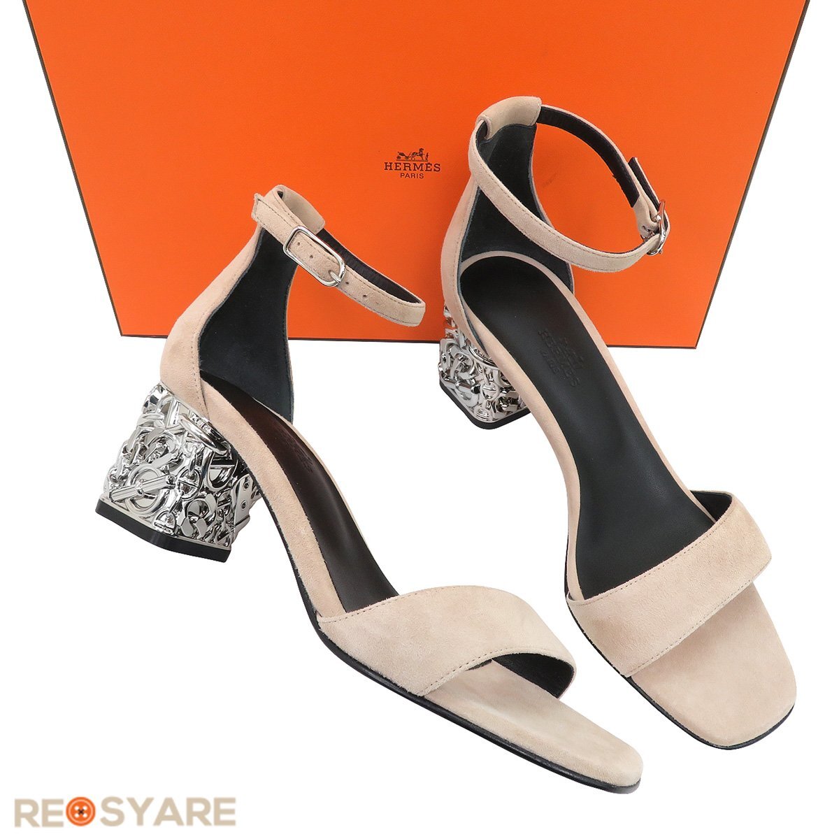 > 【未使用】エルメス HERMES サイズ37 24㎝ Glam 60 グラム シェーヌダンクル スエード レザー サンダル 国内正規品 付属品あり 47343