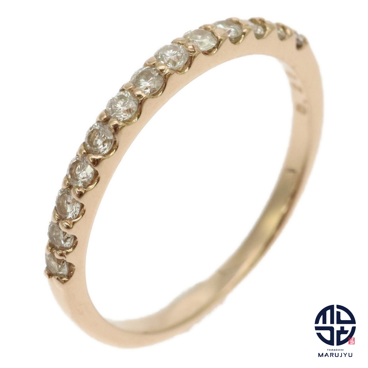 > K18PG 18金ピンクゴールド ダイヤ0.20ct ハーフエタニティ リング 指輪 約7号 シンプル 重ね付け ジュエリー アクセサリー