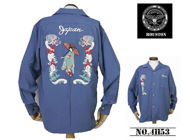 > 【送料無料 30%OFF 】HOUSTON ヒューストン 刺繍スーベニアシャツ・スカシャツ 「 MAIKO 」柄 NO.41153 BLUE_Mサイズ