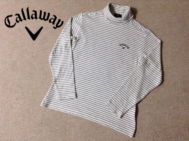 > ★中古★キャロウェイ 吸湿発熱 ボーダーフライス タートルネックシャツ 白黒 長袖 メンズ Callaway C21233111