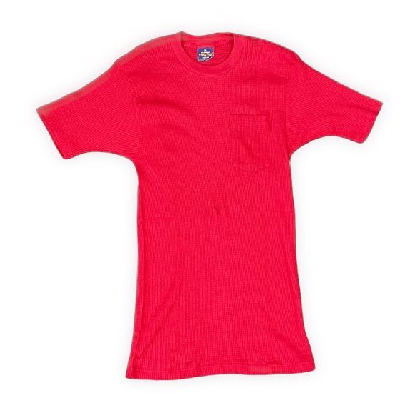 - デッドストック 90's 米国製 J.E.MORGAN モーガン TOUGH TEES サーマル Tシャツ 半袖 ポケット 綿ポリエステル 赤 XL [la-1274]