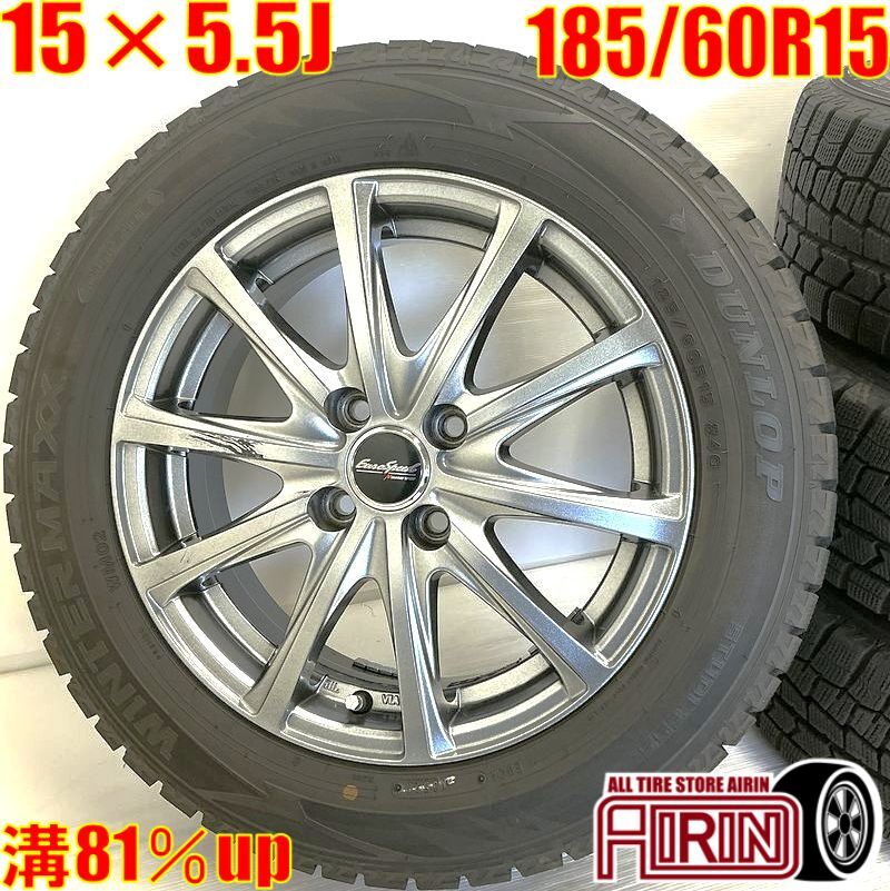 | 【中古】アルミホイール・タイヤ付 EuroSpeed DUNLOP WINTER MAXX WM02 185/60R15 4本セット