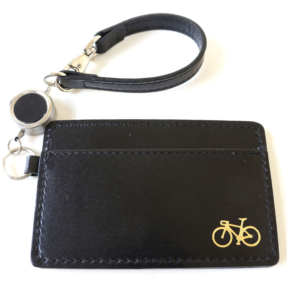 - 訳あり 本革 パスケース 定期入れ 革 リール 伸びる リール付き 自転車柄 黒 高級 牛革 通勤 通学 おしゃれ かっこいい