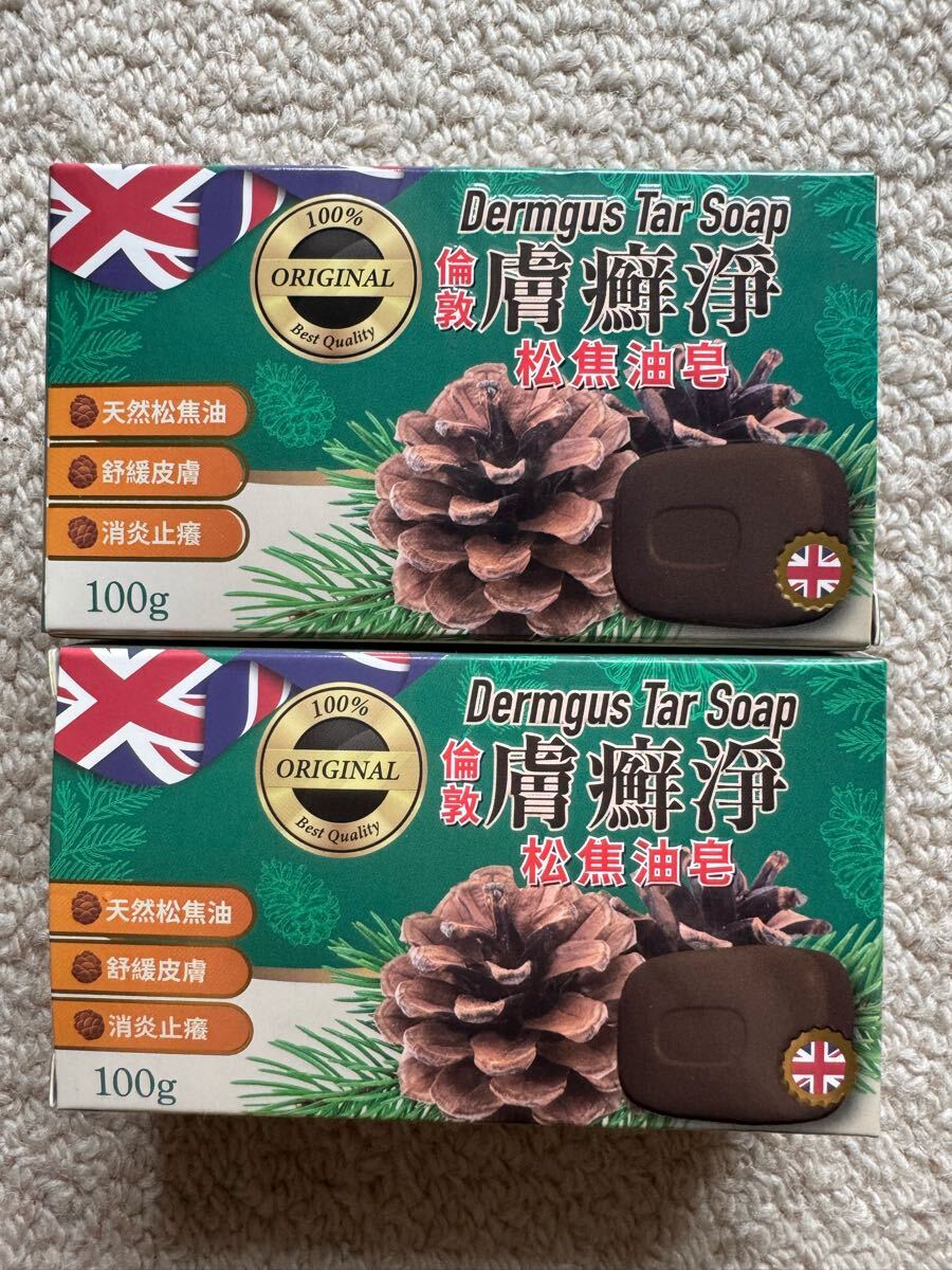 > ★未使用保管品★2個 松脂 パインタール ソープ 石鹸 疥癬 湿疹 脂漏性皮膚炎 乾癬 アトピー 痒み 100g LONDON DERMGUS TAR SOAP 香港